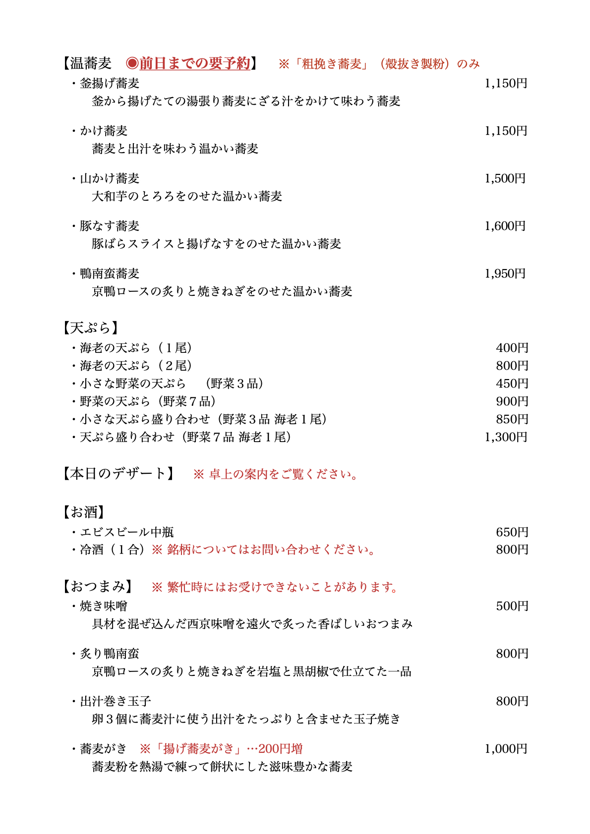 殻を取り除いた蕎麦の実を石臼にかけ、粗めに挽いた粉を手打ちした細打ちの十割蕎麦。上品な蕎麦の香りをまとい、歯応えや喉越しが良く、噛み締めると蕎麦のほのかな甘みが感じられる。味、香り、食感のバランスに優れた、万人に好まれる蕎麦。